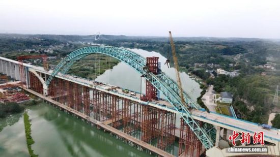 成渝中线高铁沱江特大桥全桥合龙现场。长江沿岸铁路集团四川公司供图