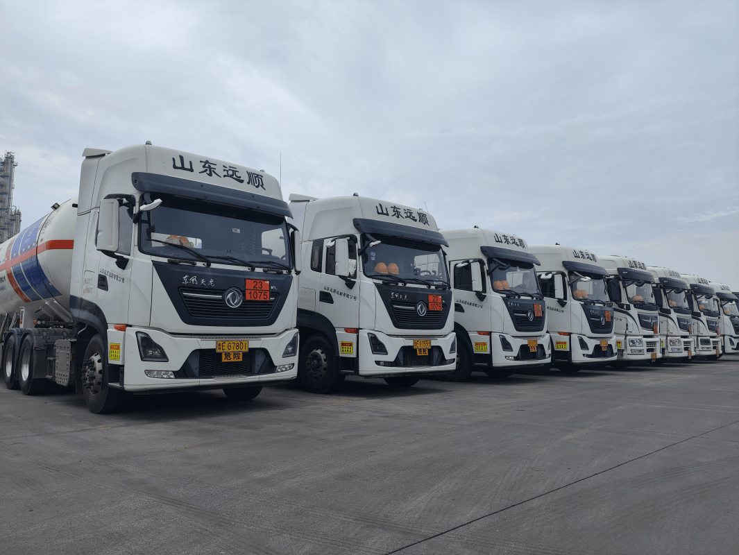 地处山东东营的山东远顺与其他企业不同,运输的并不是当地有名的“黑黄金”,而是以国家主要炼化企业资源运输及民生用气保供为重任。公司自有液化气工厂,因此车队一小部分承接公司的产品运输,一大部分承接客户的业务。除了在山东境内运输之外,山东远顺还开通了国际道路运输线路,与多家500强企业合作,年度运量达到了122万吨。