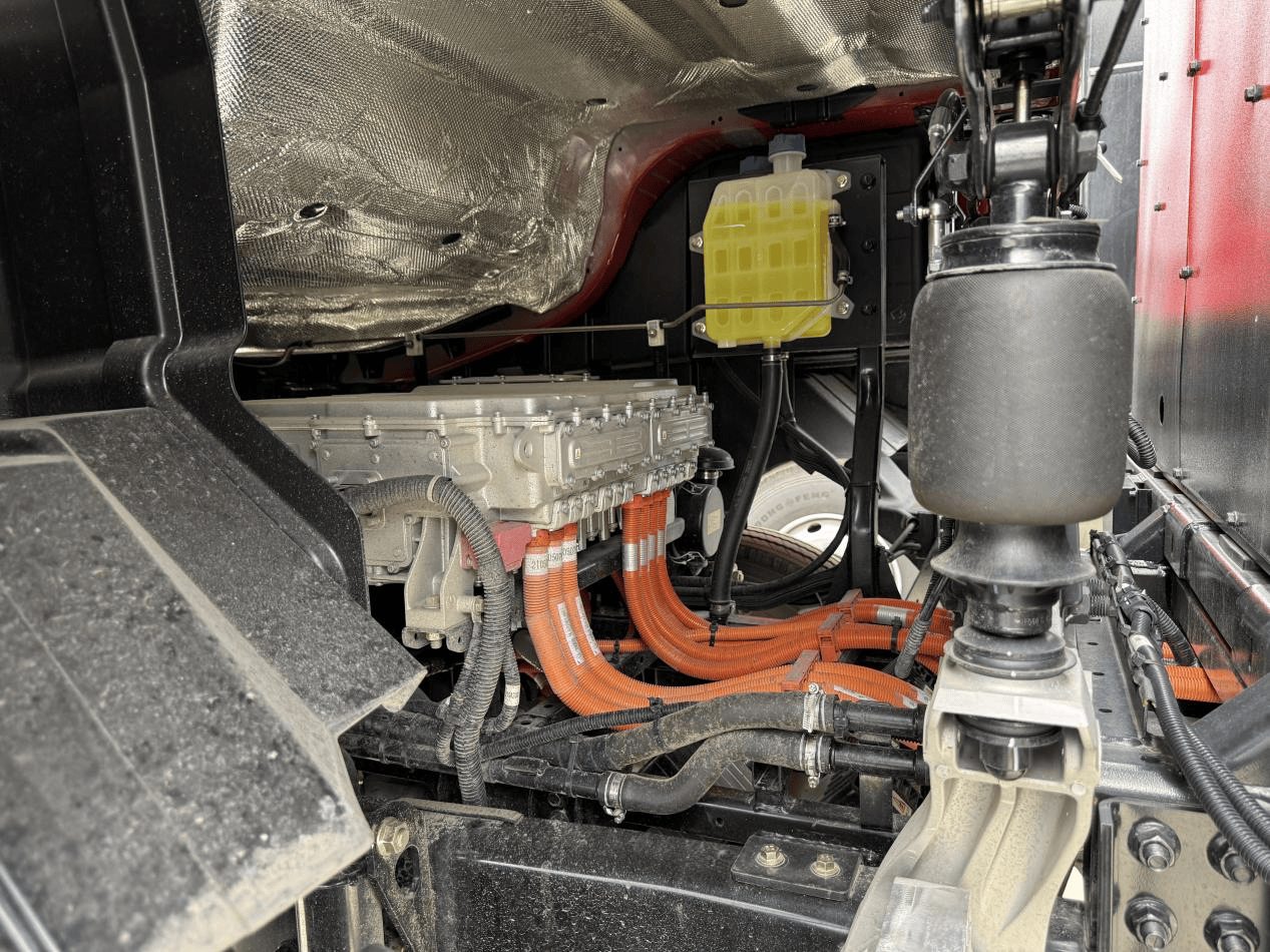 对于常年穿梭于西南地区复杂路况的卡友而言,动力是关乎效率与安全的生命线。TE86搭载的大功率永磁同步驱动电机,拥有510kW的峰值功率与3100N·m的惊人扭矩。这套动力心脏意味着什么?它意味着车辆在面对长距离、高难度的爬坡路段时,能持续输出强劲而稳定的动力,重载起步更从容,坡道超车更有力。