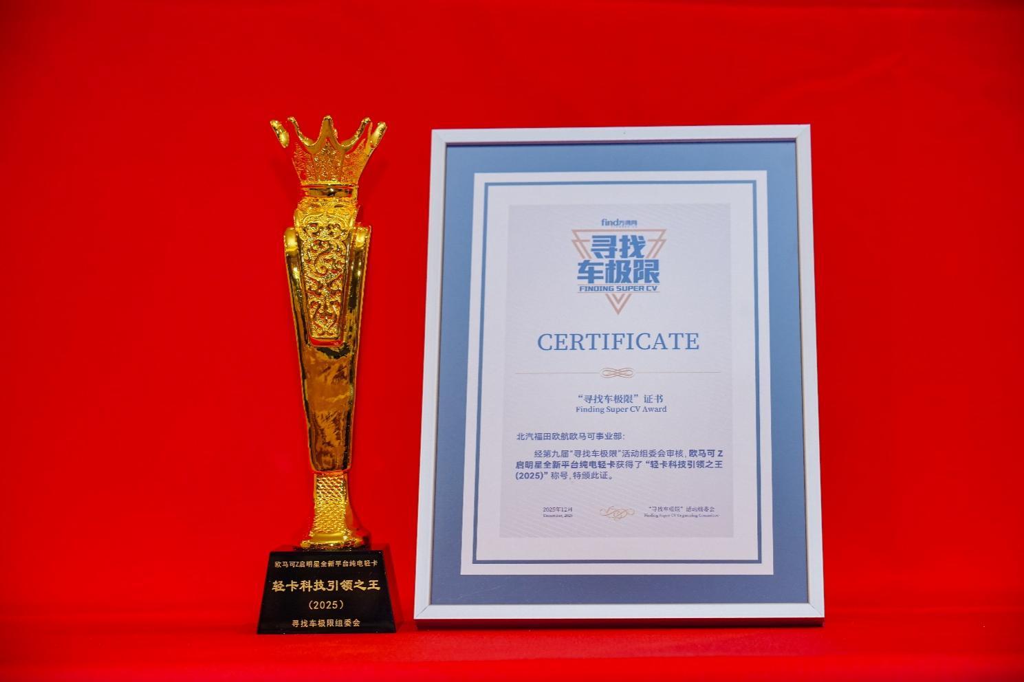 12月10日,方得网2025第九届“寻找车极限”活动评选正式公布。在众多实力选手的激烈角逐中,欧马可Z启明星全新平台纯电轻卡凭借跨时代的领先科技与原生纯电架构脱颖而出,一举摘得“轻卡科技引领之王2025”称号。这一殊荣,不仅是对欧马可技术实力的权威背书,更是行业对其敢于打破传统造车逻辑、重塑高端轻卡价值的高度认可。